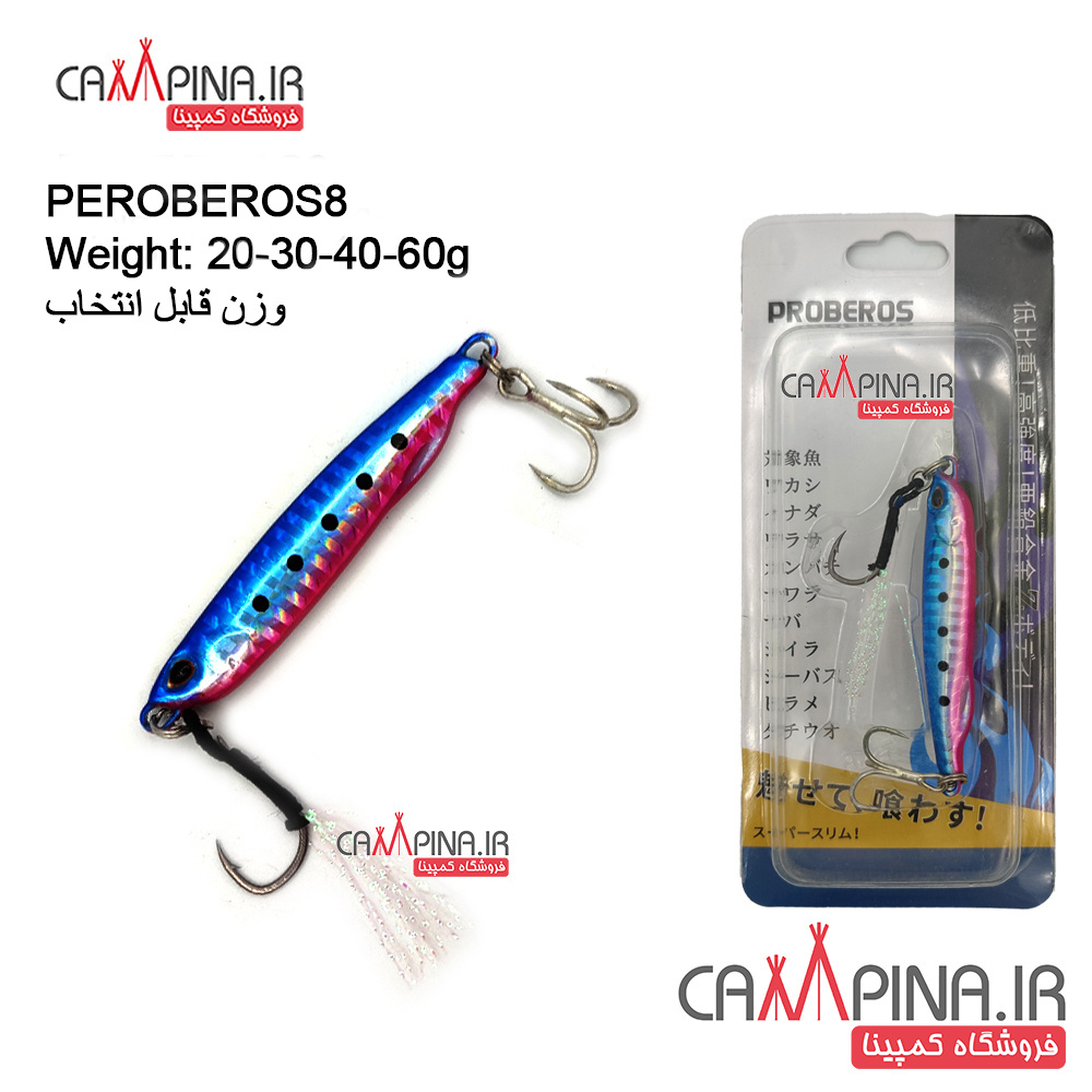 طعمه جیگ ماهیگیری PEROBEROS8 آبی صورتی : 60 گرم