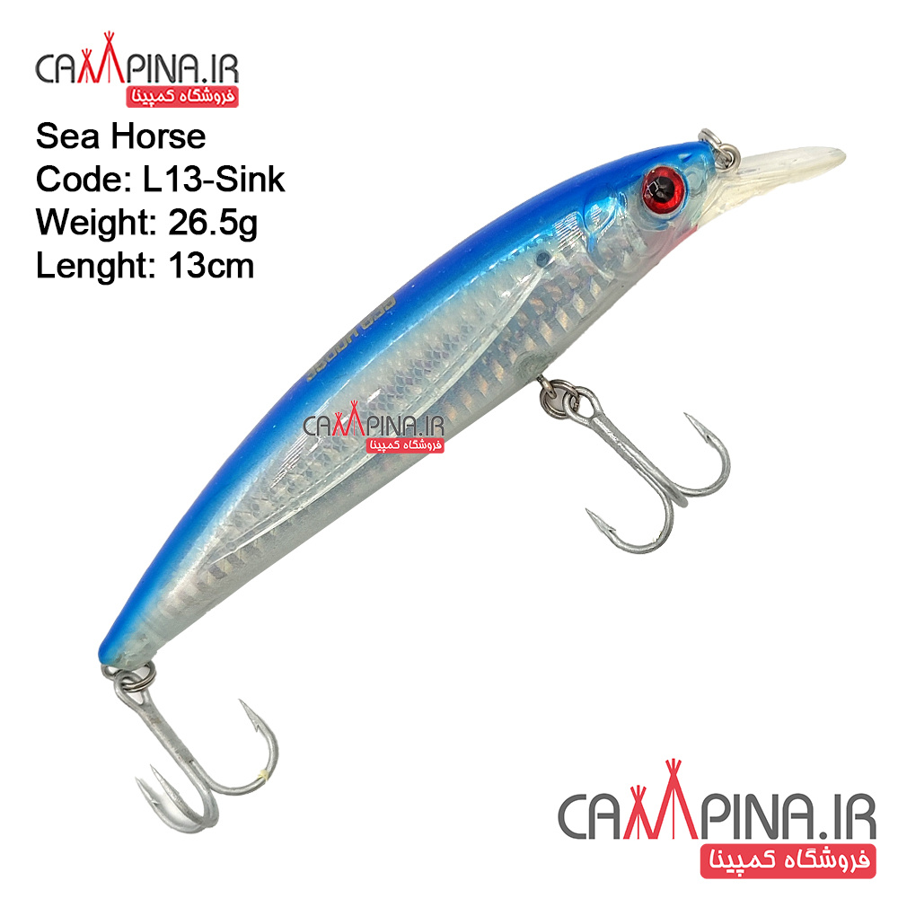 طعمه ماهیگیری L13-Sink از جنس سخت و استخوانی بوده و از برند Sea Horse می باشد. این لور ماهیگیری مناسب صید به روش اسپینینگ یا لانسه کشی بوده و از آن می توان برای صید ماهیان مهاجم (زنده خوار) آب شور مانند؛ شیر، هامور، باراکودا و... استفاده کرد.