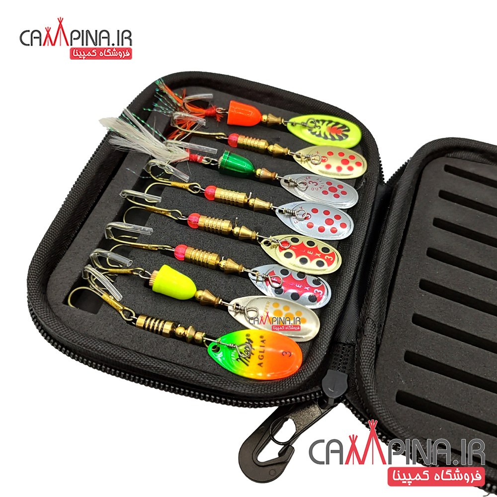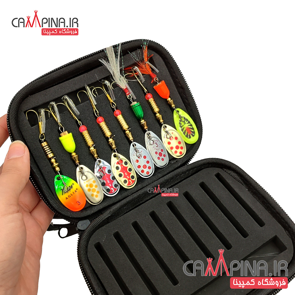 این پک کیف و لانسه قزلی شامل یک کیف 16 خانه و 8 عدد لانسه است . قاشقک سایز 3 برای شکار انواع ماهی های مهاجم آب شیرین مثل اردک ماهی، صوف، سونگ و ... استفاده می شود. از این طعمه همانند سایر اسپینرهای ماهیگیری برای ماهیگیری به روش لانسه کشی (اسپینینگ) استفاده می شود.