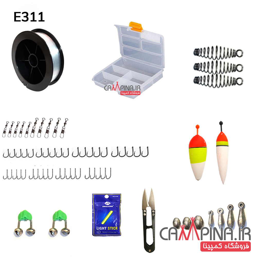 ست کامل لوازم ماهیگیری کد E311 دارای تمامی لوازم مورد نیاز برای یک ماهیگیری لذت بخش بوده و مناسب صید ماهی به شیوه انتظاری در رودخانه، دریاچه، سد و... می باشد.